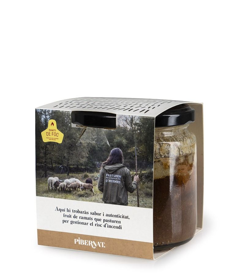 La matèria primera prové dels xais dels ramaders David i Lluc Coll, d’Agullana (Alt Empordà), que pasturen en zones estratègiques per reduir el risc d’incendi forestal. Són animals que, mentre mengen, cuiden; i mentre avancen, dibuixen paisatge. Per això, aquest Melós és molt més que una conserva: és ofici, sostenibilitat i proximitat. S’elabora sota demanda i es comercialitza a través de Pibernat Alimentària, tant online, com en punts de venda adherits.
