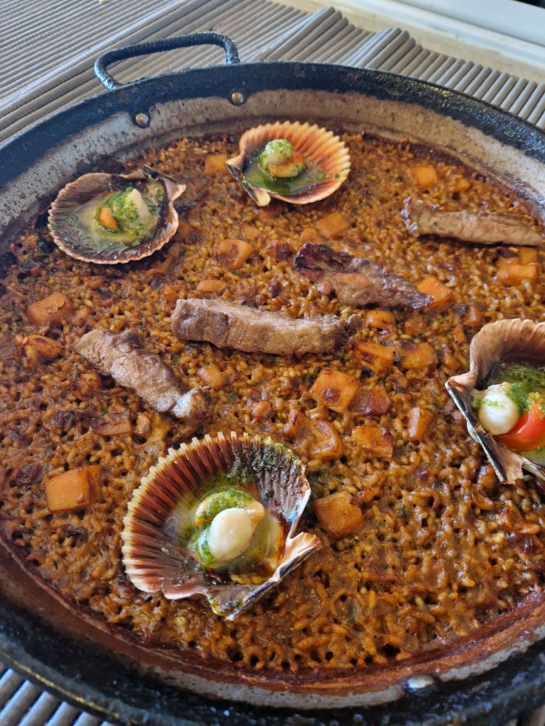 Arroz de mar y montaña con pluma ibérica y zamburiñas