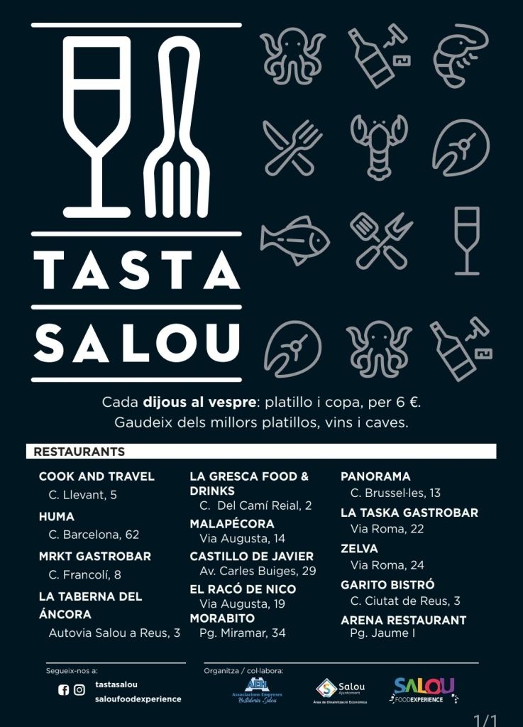 Els establiments protagonistes, les propostes setmanals, l’actualitat i les novetats de ‘Tasta Salou’ es podran consultar a la pàgina de Facebook i a l’Instagram @tastasalou; així com al web