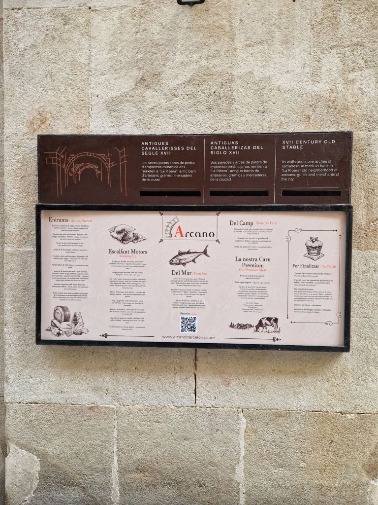 barcelonins passen de llarg. En cadascuna de les parades, els guies de HL Comedy Tours revelen la història i els secrets més fascinants del Born, oferint una experiència única que connecta els visitants amb l’ànima del barri. El tour culmina precisament a Arcano, on els participants s’asseuen a taula per assaborir un menú especial.