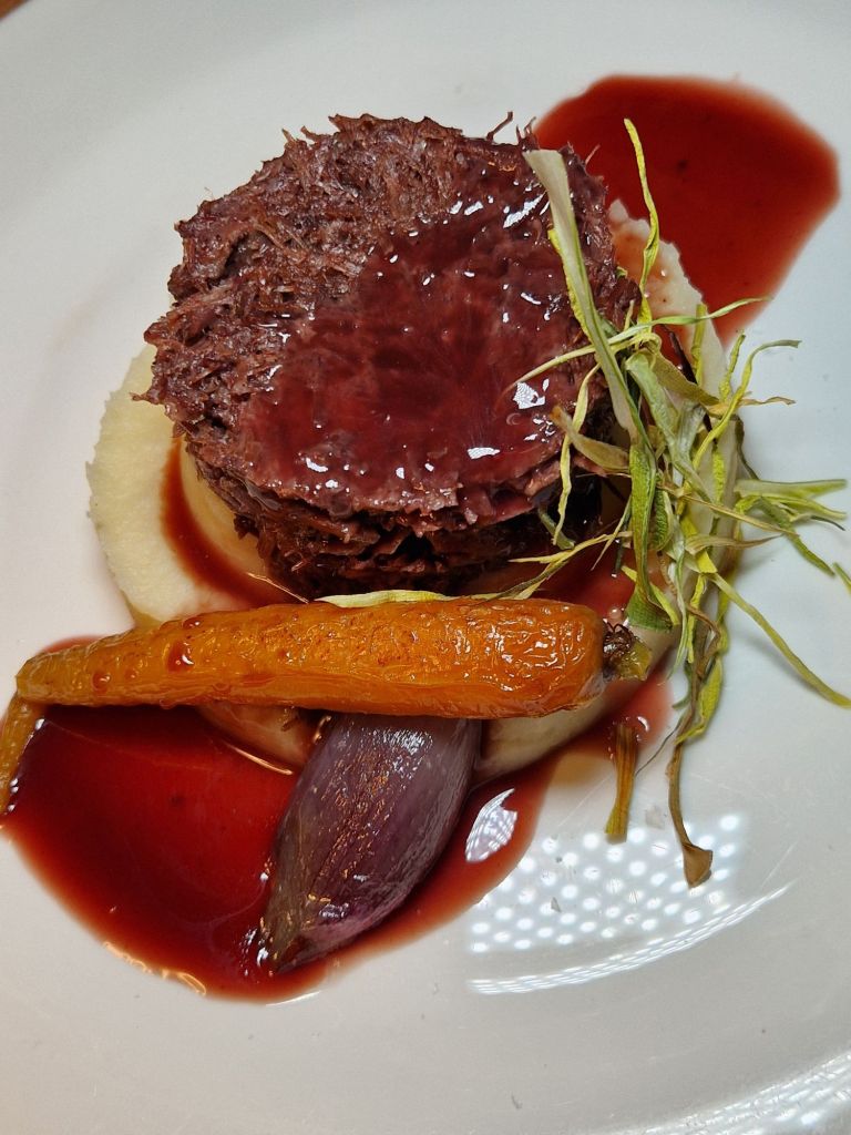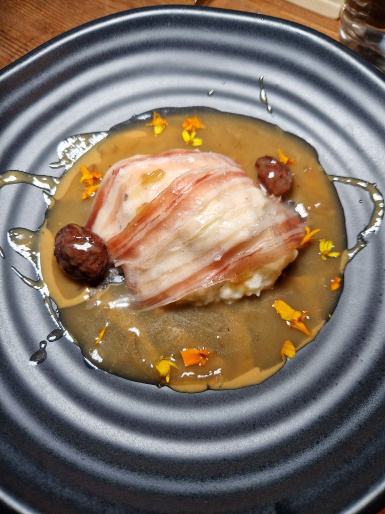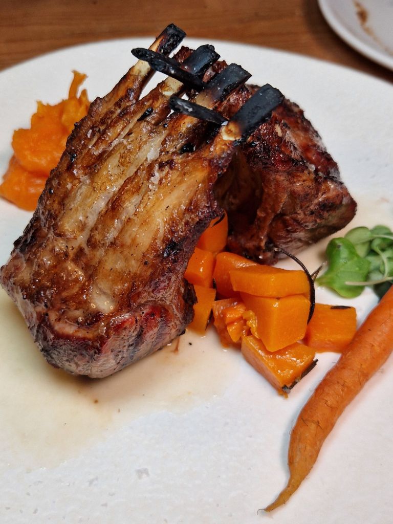 melós de galtes al vi ranci, cuinat a baixa temperatura, reivindica el valor del temps i de les coccions llargues, quan el foc lent era el principal aliat del cuiner; mentre que el french rack de xai a la brasa amb verduretes dolces rememora la presència de les peces nobles als banquets medievals.