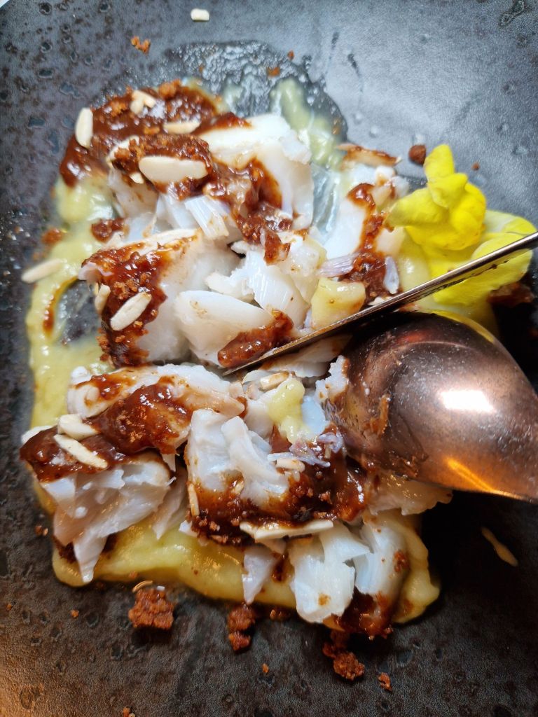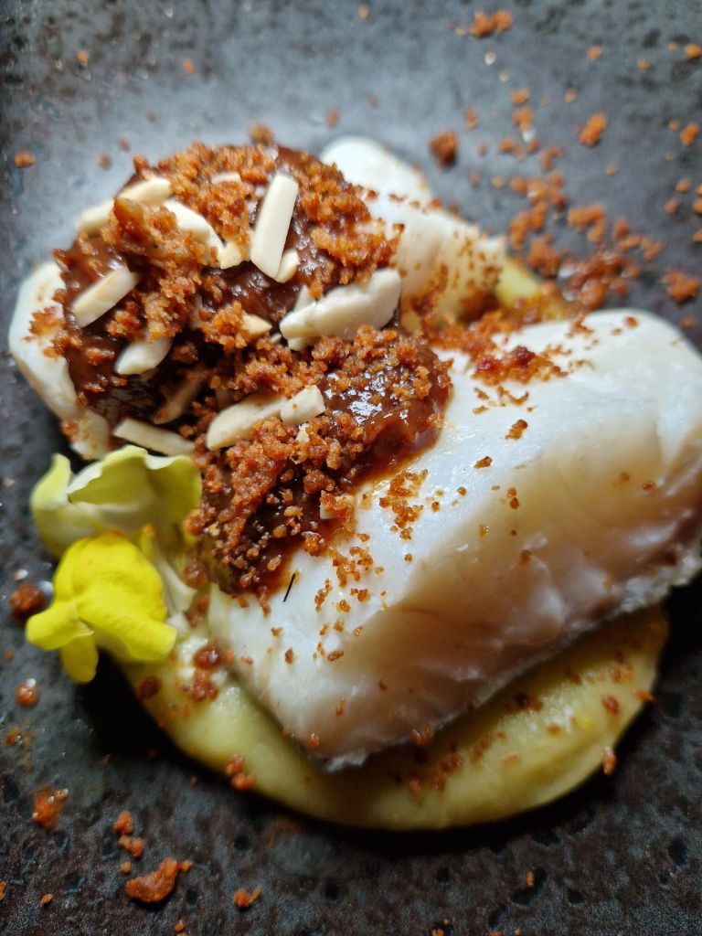 El bacallà es presenta en dues coccions acompanyat d’ametlles i figues, recuperant el