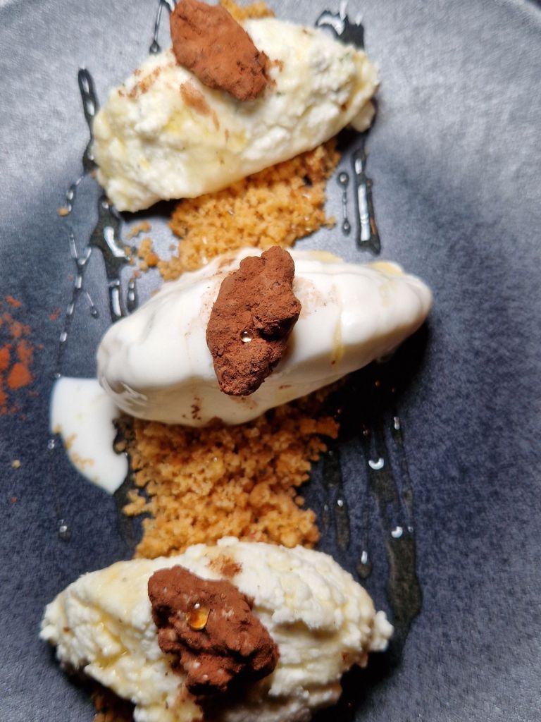 del mel i mató, on mel, fruits secs i herbes aromàtiques retornen al postre la seva dimensió més essencial i territorial, tancant una proposta que entén la memòria culinària no com a nostàlgia, sinó com una base sòlida sobre la qual continuar construint.